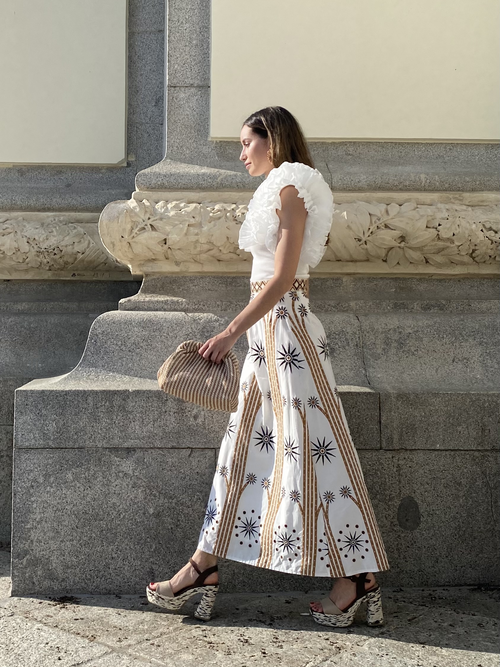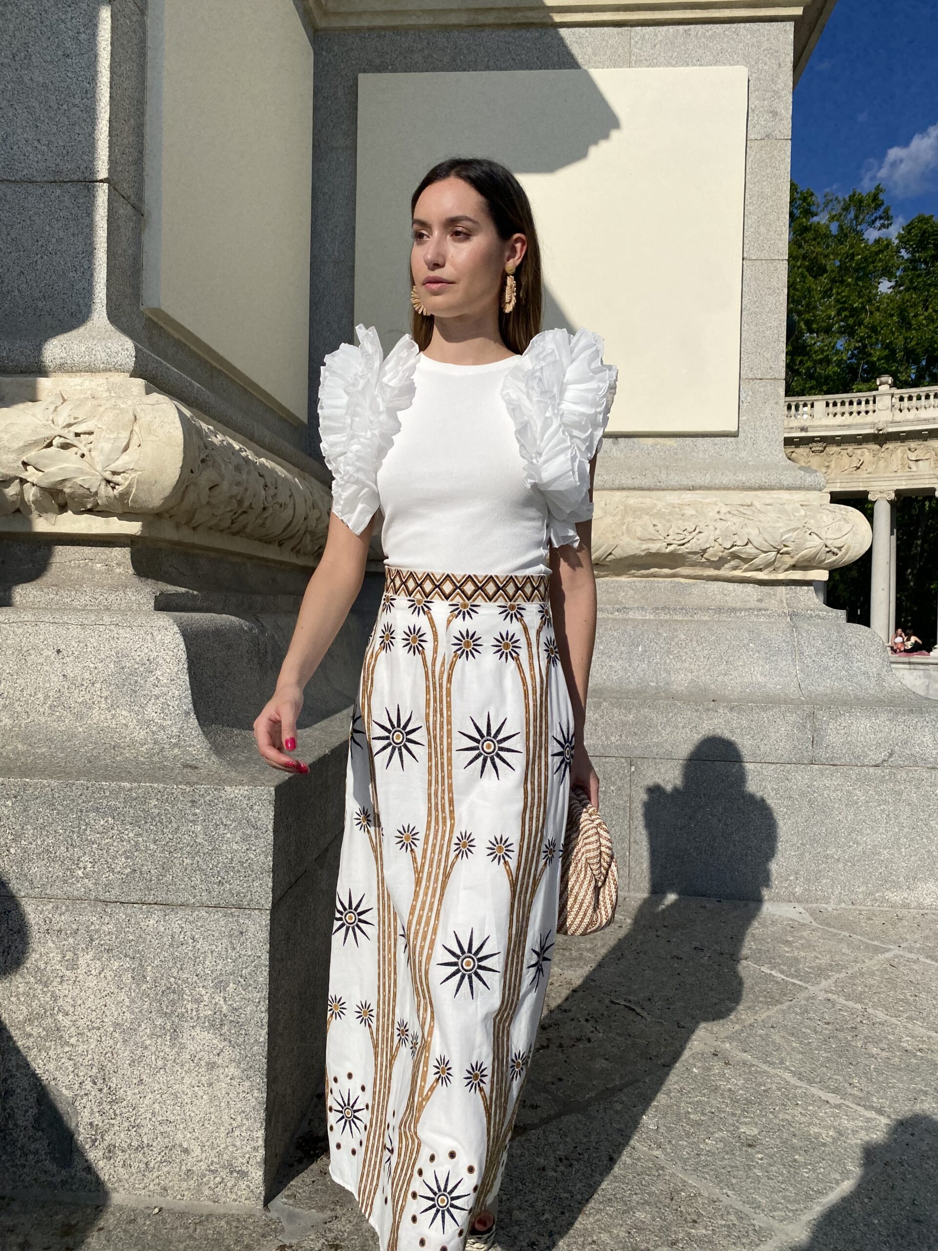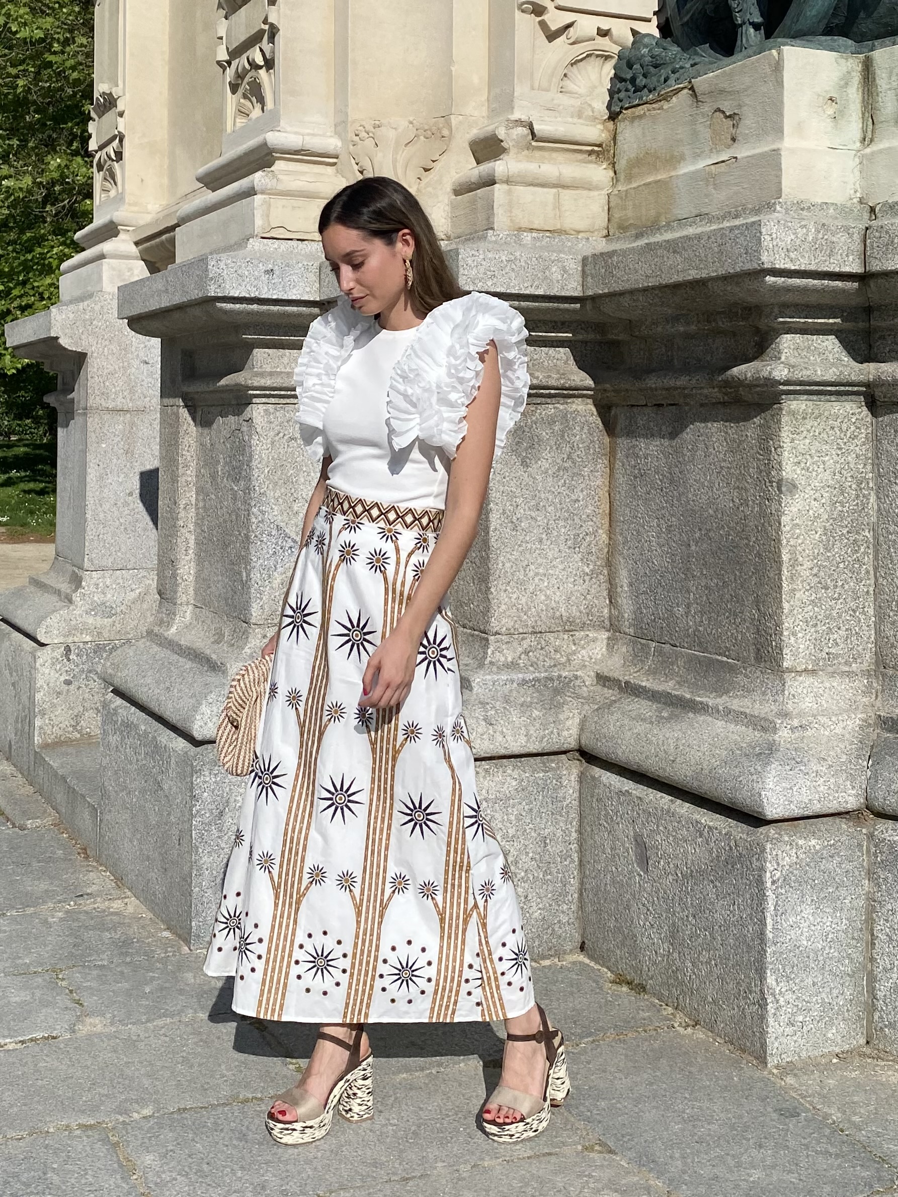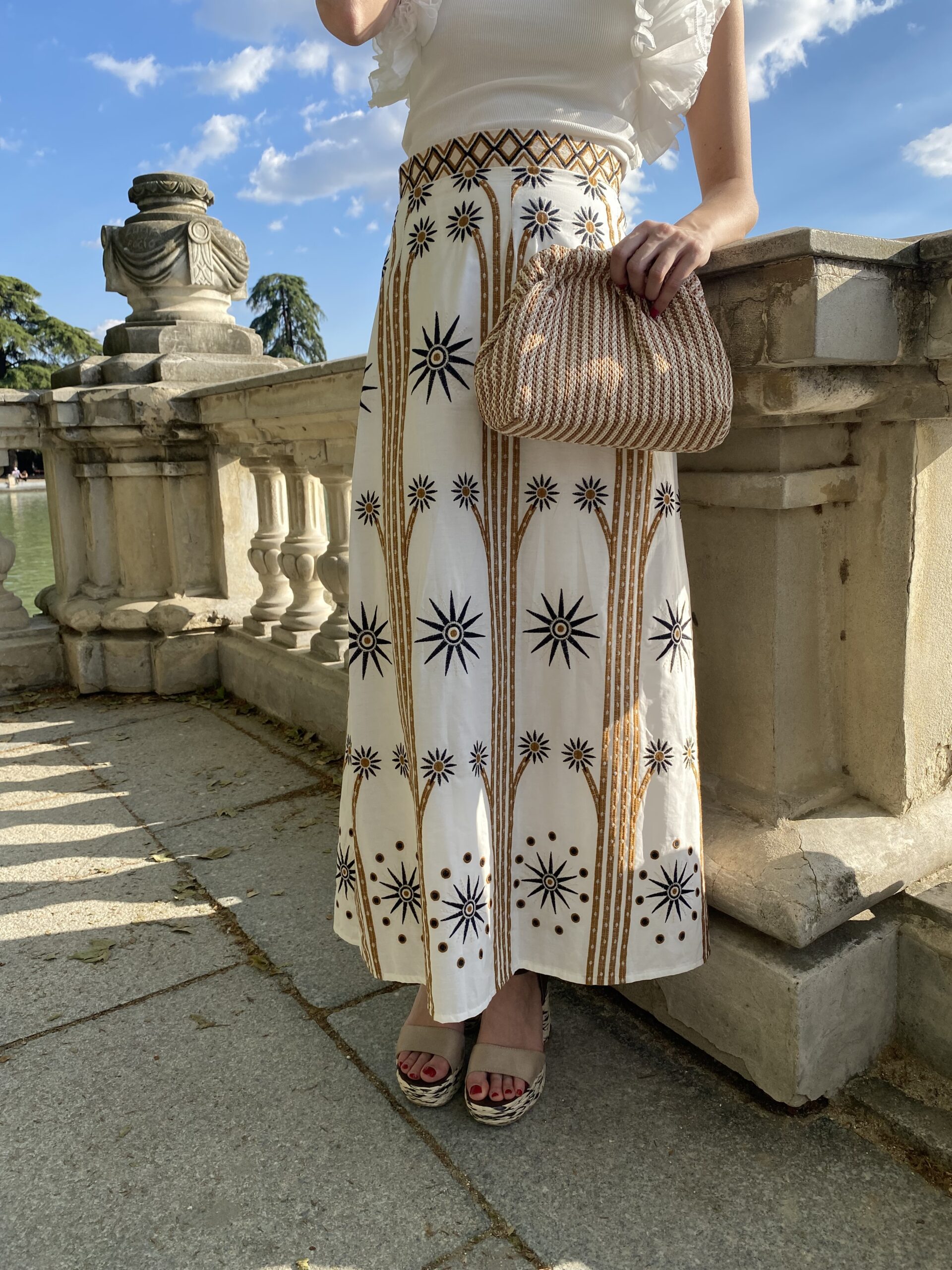 Falda bordada con cremallera lateral invisible .