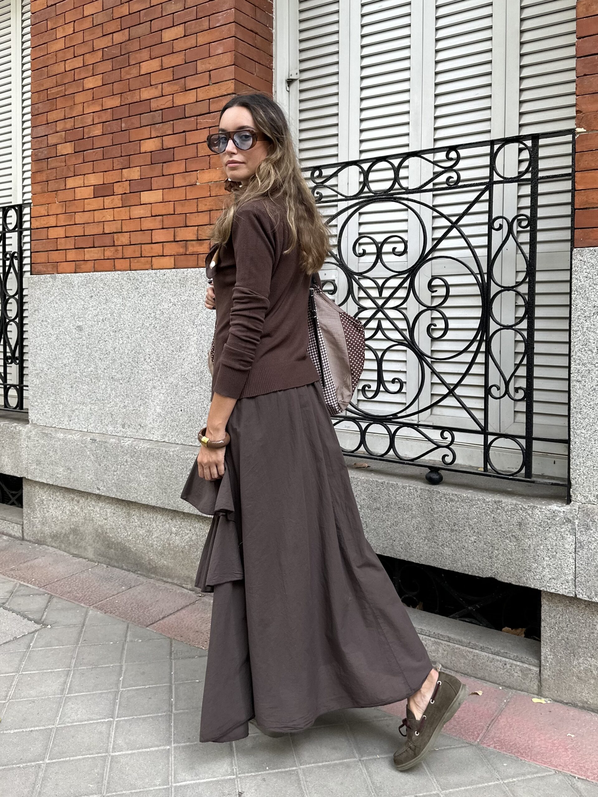 Falda cuadros gasa azul y choco