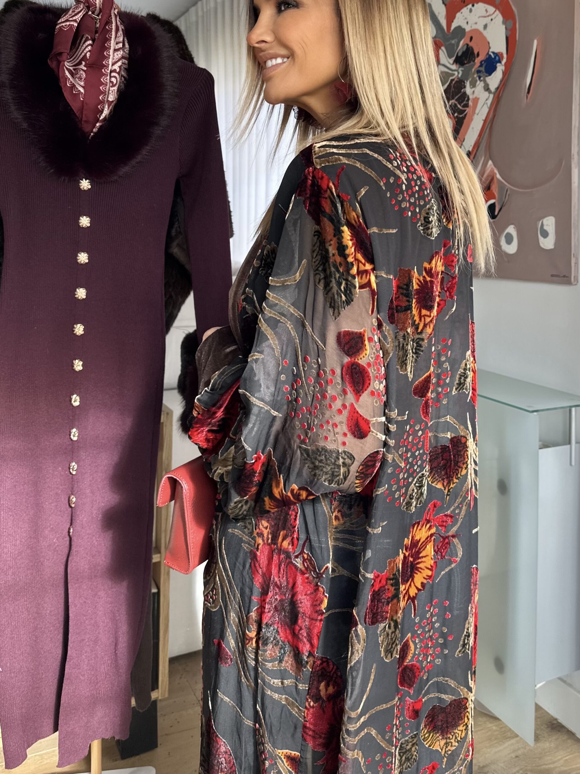 Kimono bloom flocado terciopelo