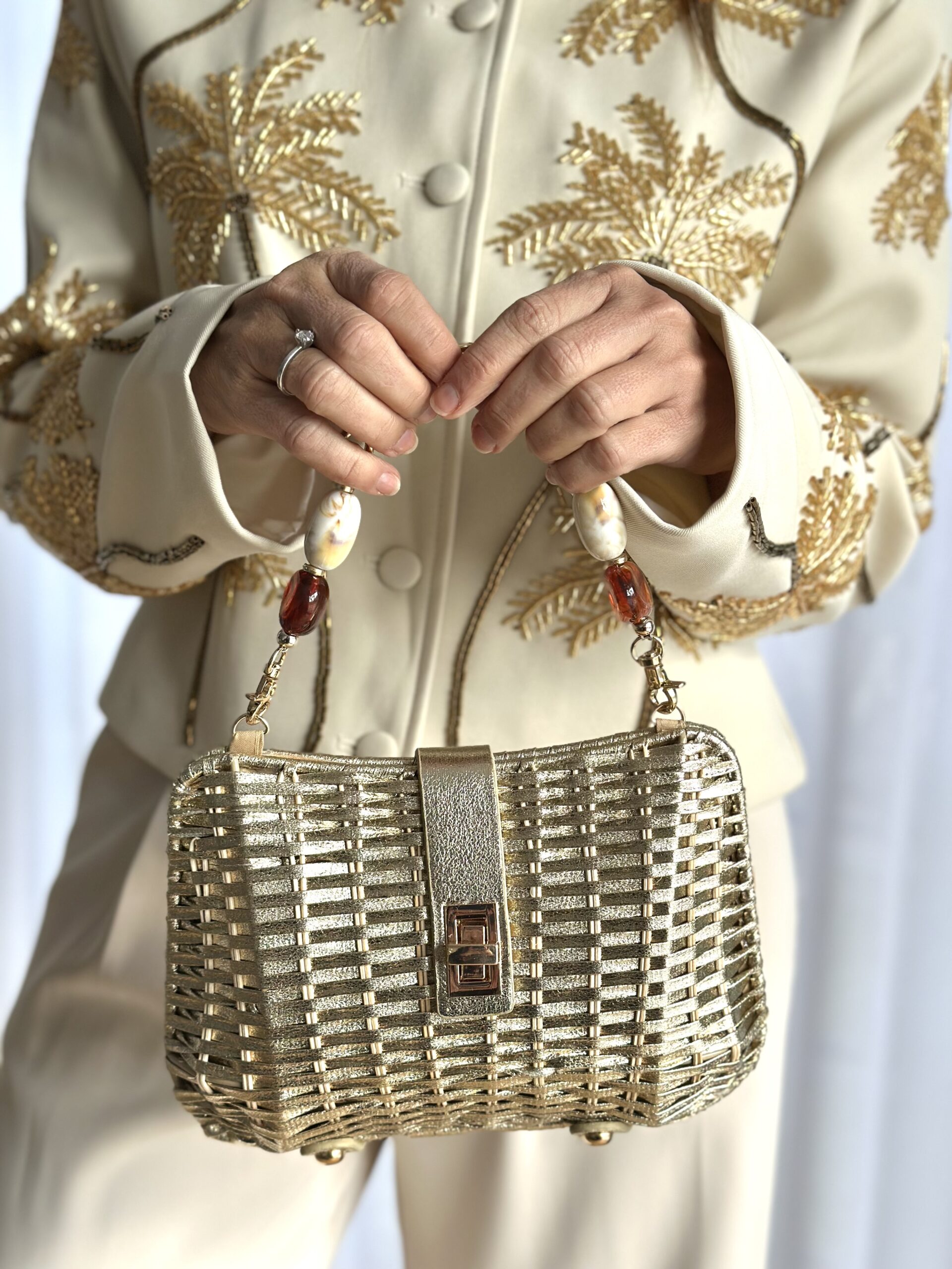Bolso rafia joya dorado