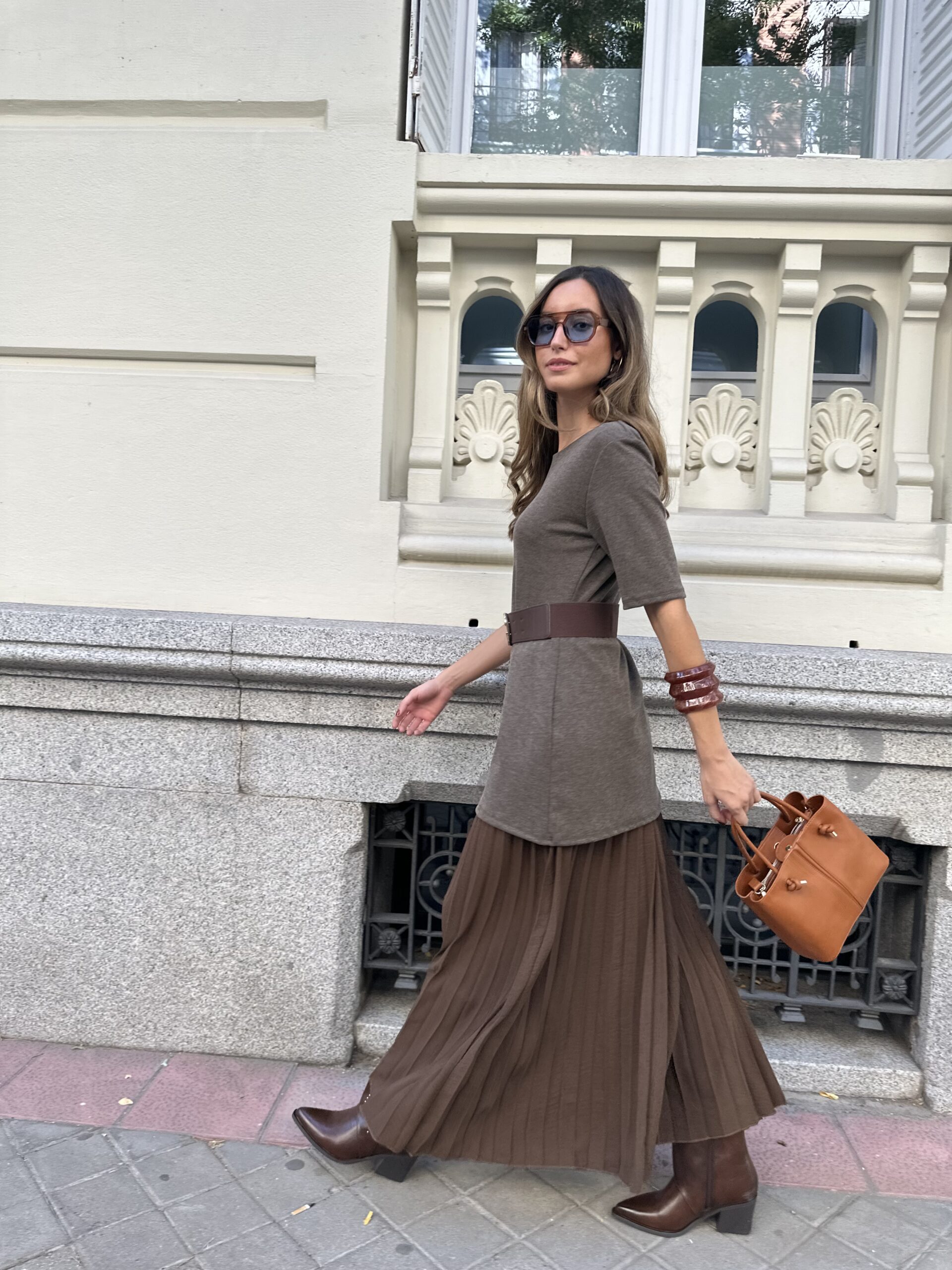 Vestido de punto y plisado tramontana chocolate