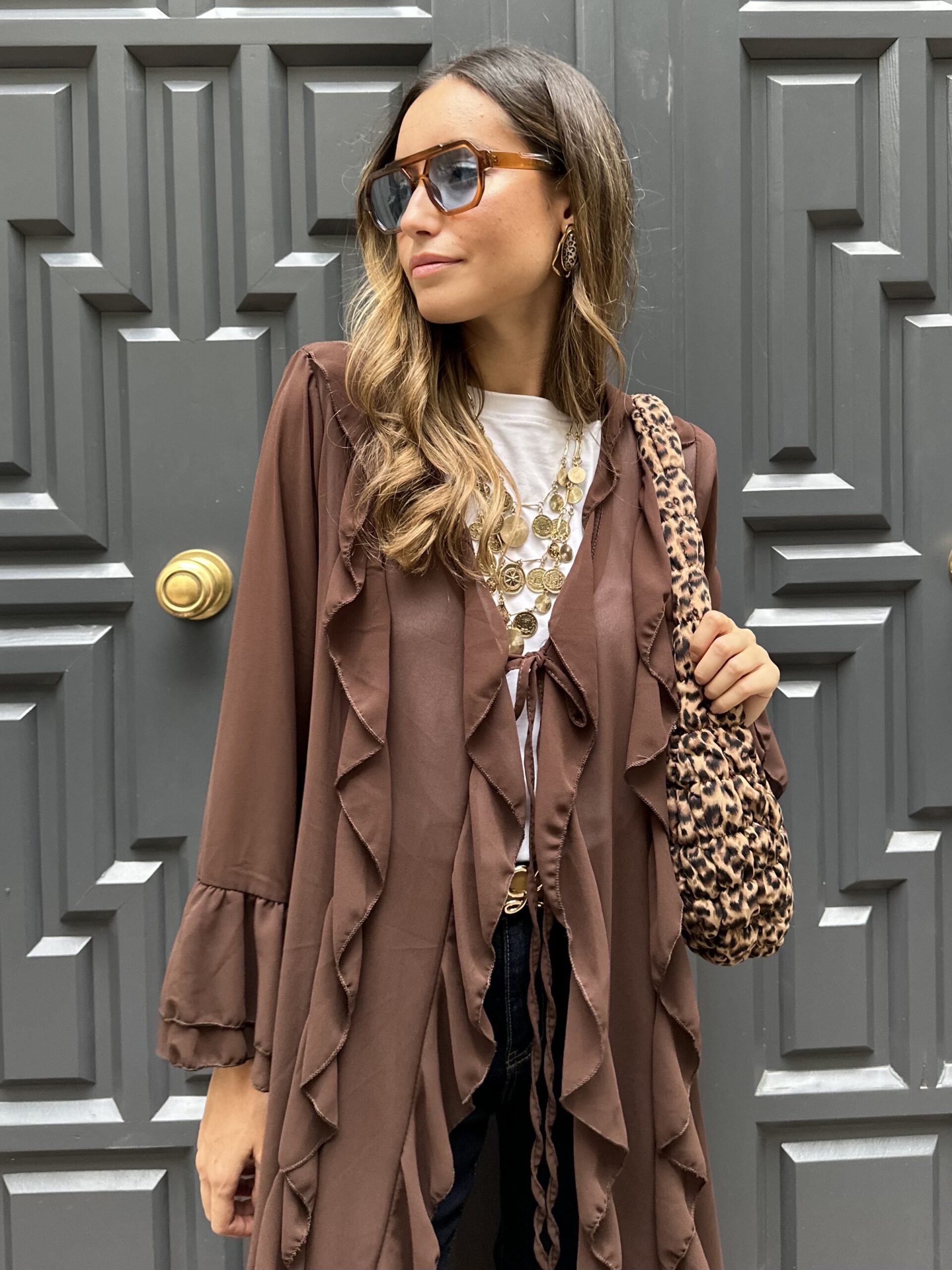 Kimono chiffon volantes choco